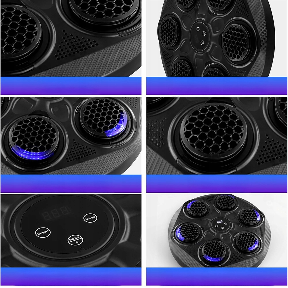 Ця музична скринька поєднує в собі рух і розваги. Прохолодне світло, вражаючі звукові ефекти та динамічна ритмічна взаємодія можуть виконувати захоплюючі аеробні вправи та покращувати витривалість і швидкість реакції. Машинка для боксу має хорошу ударостійкість. Стільникова структура може зменшити вібрацію та не поранити руку.