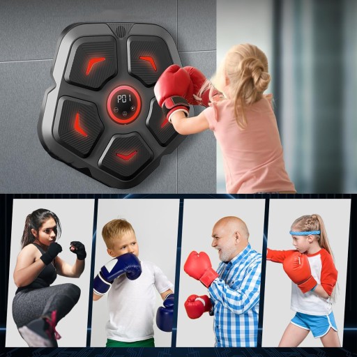 Нова, вдосконалена версія інтелектуального музичного боксу, встановленого на стіні з вбудованою - У динаміках та датчиках світла ви можете практикувати враження по ритму музики, але також у світлі від центру боксерської машини, випадковим чином перенесеною в область 6 круглих датчиків, коли світло в круглої області швидко вражає, Він може бути використаний для практики навичок координації та реакції. депресивне і потребує полегшення. Килимок для боксу підтримує розумне телефонне з'єднання Bluetooth. Ви можете грати музику з телефону.