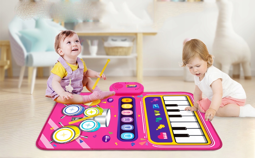✅【ЧУТЛИВИЙ НА ДОТИК ТА ІНТЕРАКТИВНИЙ】: наші музичні килимки для маленьких дівчаток натхненні дотиком, на відміну від звичайних фізичних кнопок, ви можете торкатися їх рукою та наступайте на них ногою, інтерактивно, просто торкніться піктограми музичного інструменту та клацніть, щоб вибрати інструмент, на якому хочете грати. Крім того, іграшки для малюків 0-2 років призначені для 2 гравців, це хороший спосіб покращити взаємодію між батьками та дитиною та чудова іграшка для раннього навчання. Великодній подарунок для малюка.