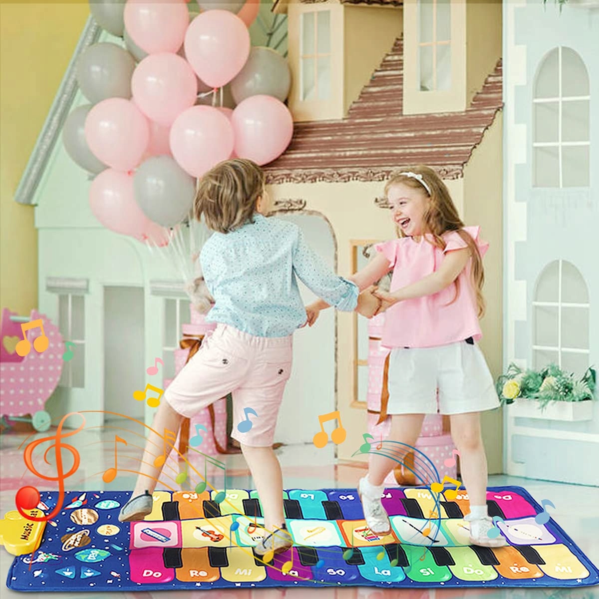 🎶 легко грати: фортепіанний килимок для дітей був розроблений на темно -синьому зоряному небі і містить 8 музичних інструментів, 10 рим для дітей та 20 фортепіано. Багаті звуки та кольори спонукають дітей взаємодіяти з вами. Вивчіть різні звуки під час гри та дозволяйте своїм дітям розвивати прекрасні та глибокі фантазії. Створення музики може розвивати свій мистецький талант, який позитивно впливає на його ранню освіту та подальший розвиток. Дизайн, що не є, безпечніший. Діти можуть чудово провести час, танцюючи на спаровуванні клавіатури на фортепіано. Завдяки простому встановленню 3 батарейних батарей (включено). Крім того, легко зберігати та транспортувати зовні та підходить для використання всередині та зовні. Розміри: 120 х 48 см. Два ряди музичних клавіш пропонують більше вмісту, ніж один рядок. Це ідеальний подарунок на день народження, Різдво, вечірки для дітей та інші фестивалі. Ваш малюк сподобається!