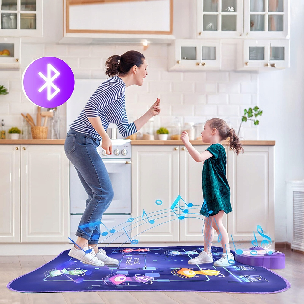 Порівняно зі звичайними електронними іграшками для танцю, дитячий танцювальний килимок для дівчат у віці 3-5 років оснащений високоякісною чіпом, 6 світиться танцювальними кнопками та Bluetooth. Діти можуть танцювати під ритм музики та ходити по колодках відповідно до світла путівника на світлодіодній дошці або миготливому світлі на підлозі танцювальних килимків, щоб діти могли насолоджуватися необмеженою забавою на власній танцювальній сцені.