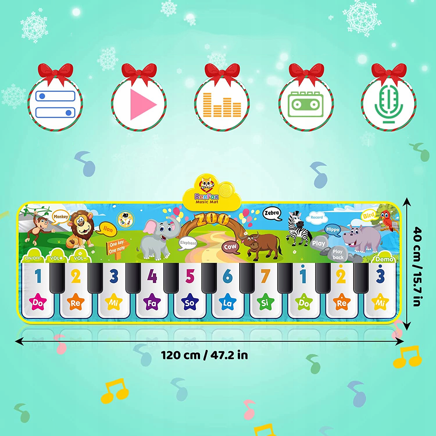 - Багатофункціональний музичний килимок : діти можуть не лише слухати музику, але й створювати та записувати власні мелодії. Наш килимок для фортепіано оснащений 8 кнопками функціонування, такими як запис, відтворення, одна ключова нота та багато інших. Це дозволяє маленьким дітям виявити багато звукових поєднань та стимулювати їх творчість.