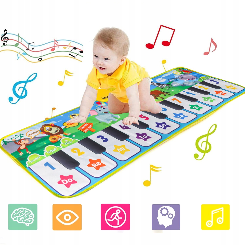 🎵🎵35 різних звуків: включає 15 дитячих пісень, 10 кнопок, 7 звуків тварин (мавпа, лев, слон тощо) і 3 музичні інструменти (піаніно, ксилофон, скрипка). Досить лише одного дотику, щоб килимок для фортепіано видав відповідні музичні звуки та вимову, щоб дитина могла вчитися та розважатися.