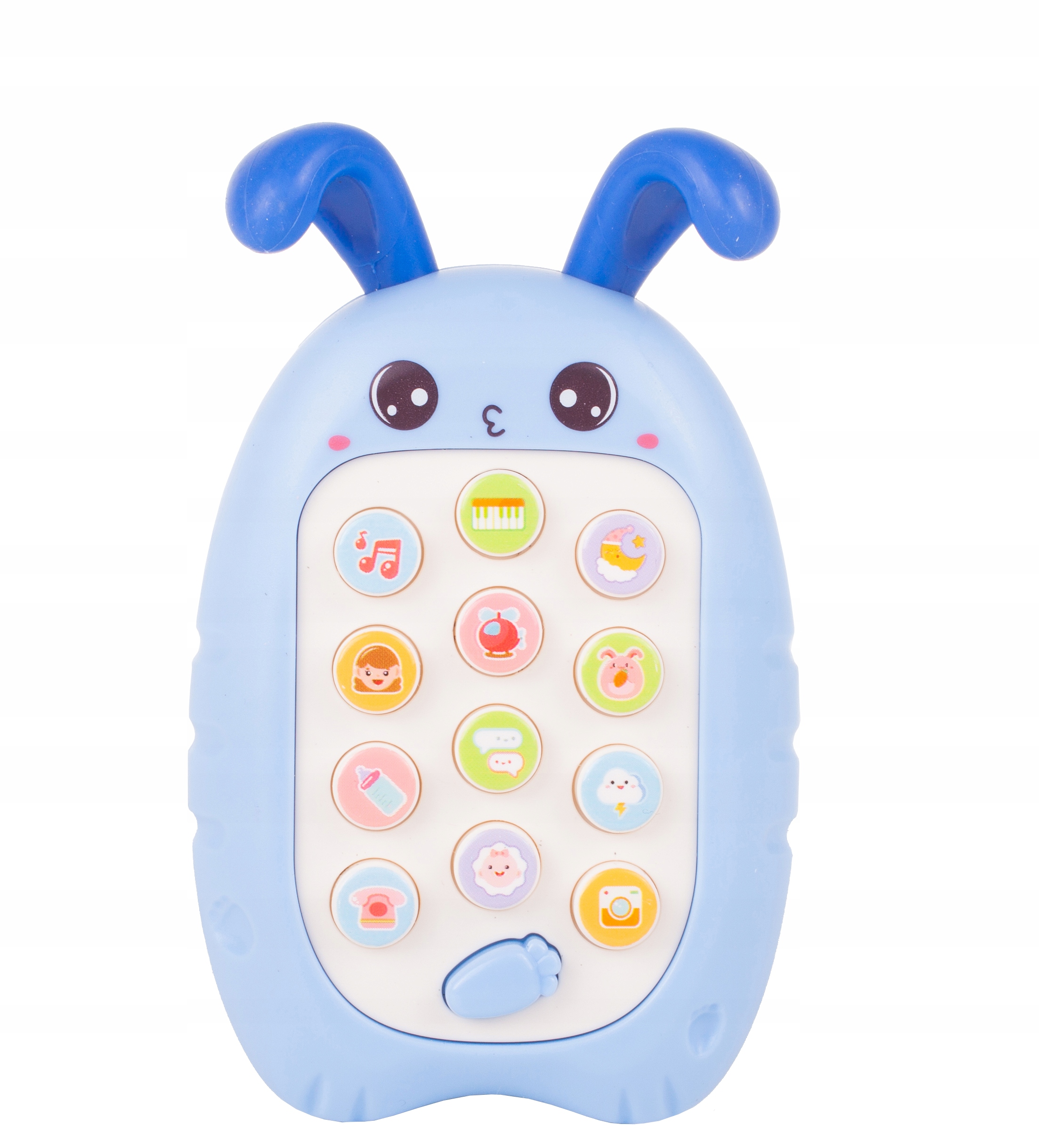 Це барвиста іграшка, схожа на справжній мобільний телефон! Дуже реалістичний вигляд і спосіб гри роблять його ідеальним для сучасного малюка Телефон має 13 кнопок, кожна з яких відповідає за певну функцію. Кнопка-морквина змінює режим телефону. Кожна взаємодія дитини викликає реакцію пристрою, він відповідає звуками та мелодіями. Вуха дівчинки гумові, тому їх можна використовувати як прорізувач.