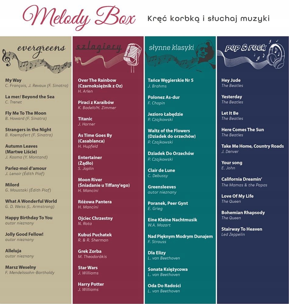 Багато хто з нас пам’ятають історію кохання Роуз і Яцеека, що відбувається в трагічних обставинах катастрофи Титаніка. Музика Оскарца Джеймса Хорнера звучить у нашому катарін-постові. Просто скрутіть кривошип, і звуки принесуть перед нашими очима Кейт Вінслет та Леонардо Дікапріо на дзьобі Трансатлантику.