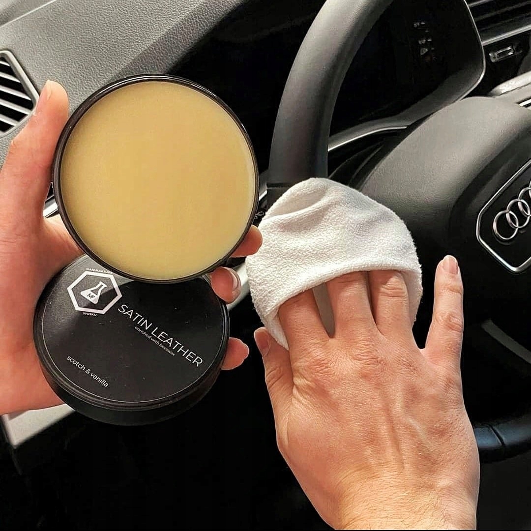 Натуральний віск ручної роботи, створений на польській фабриці для пом’якшення, догляду та оновлення шкіряної оббивки та інших виробів із натуральної шкіри.
