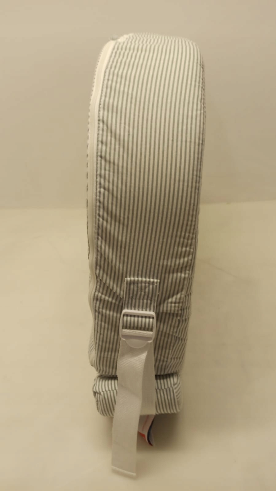Прямокутна подушка наповнена 100% холодним пінополіуретаном. Знімний чохол виготовлений зі 100% бавовни в сіро-білу смужку.