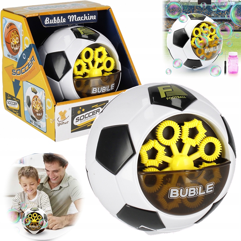 Завдяки інноваційному генератору, який поєднує ефективність і привабливий дизайн у формі м’яча, він забезпечує надзвичайну розвагу з чудовими ефектами. Простий у використанні – після натискання відповідної кнопки та наповнення контейнера рідиною для чашок машина починає чарівним чином створювати бульбашки.