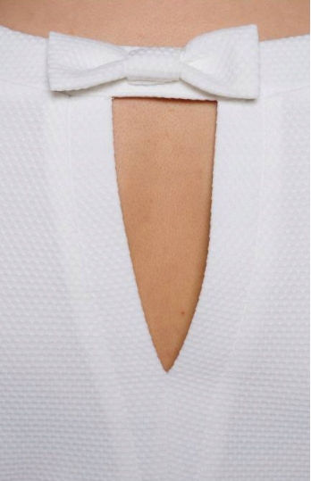 - круглий виріз горловини, короткі рукави, делікатні складки з боків живота