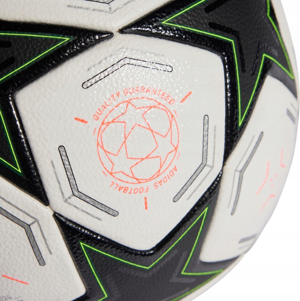 Барвистий силует із графікою та зірками створює класичний візерунок, а логотип Ліги чемпіонів УЄФА підкреслює престижність футболу. Безшовна конструкція з термічного зварювання. з низьким водопоглинаннямвитривалий для частих ігор і зберігає постійну вагу. Зовнішнє покриття забезпечує чудову обробку м'яча та точні паси, що забезпечує безперервний комфорт гри.