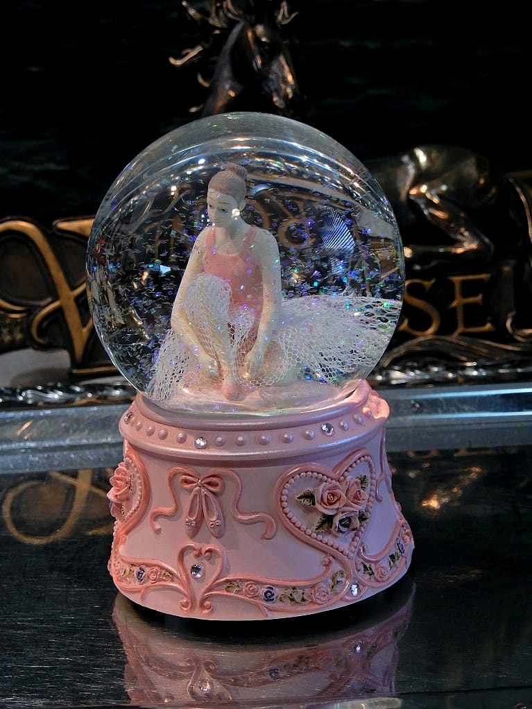В ній гарна балерина, коли потрясти, з’являється «сніг», прозорі пластівці