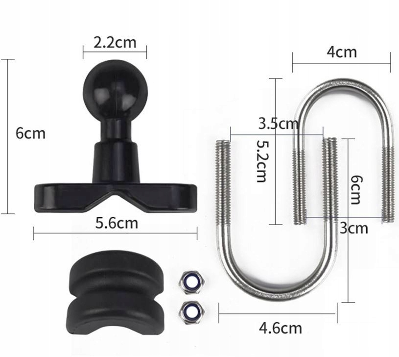 - Металевий штифт у формі букви "U" призначений для рами/керма діаметром від 0,50 дюйма до 1,25 дюйма (рукоятки 1,27 - 3,17 см)