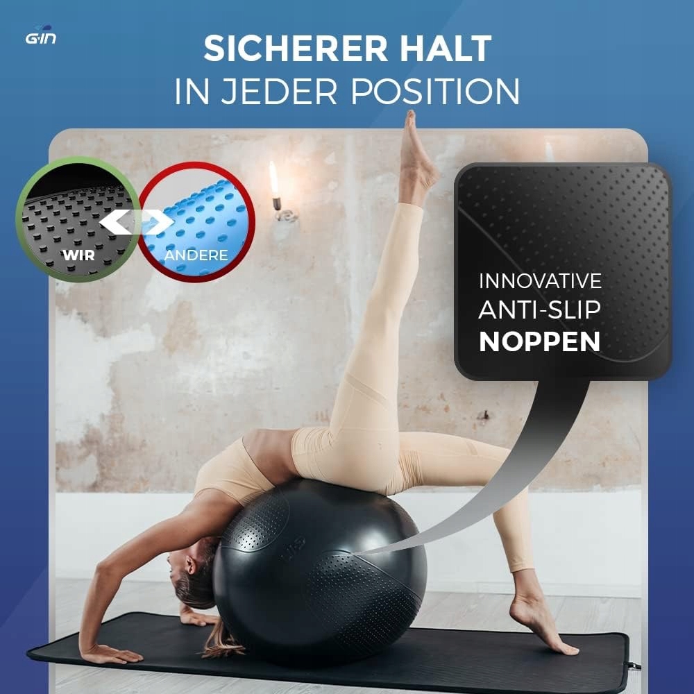 ✅ Гімнастичний м'яч G-IN виготовлений з ПВХ ANTI-BURST і покритий спеціальною протиковзкою поверхнею. Він ідеально підходить для масажу та забезпечує оптимальну підтримку під час кожної вправи. Завдяки цьому ви ідеально підготовлені до будь-яких спортивних викликів.
