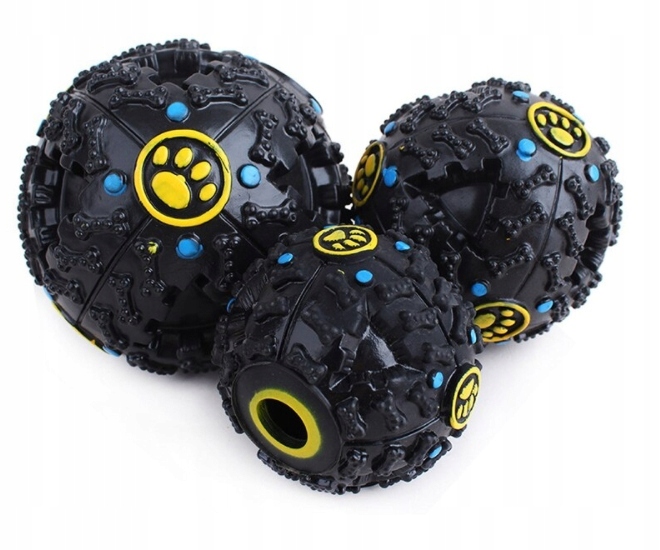 Пластиковий м'яч для ласощів, які поступово висипаються під час гри. У м’ячі є пищалка, яка одночасно стимулює інтерес собаки до іграшки та подовжує час її гри, оскільки ласощі підстрибують на ній і роблять її більш привабливою для собаки.