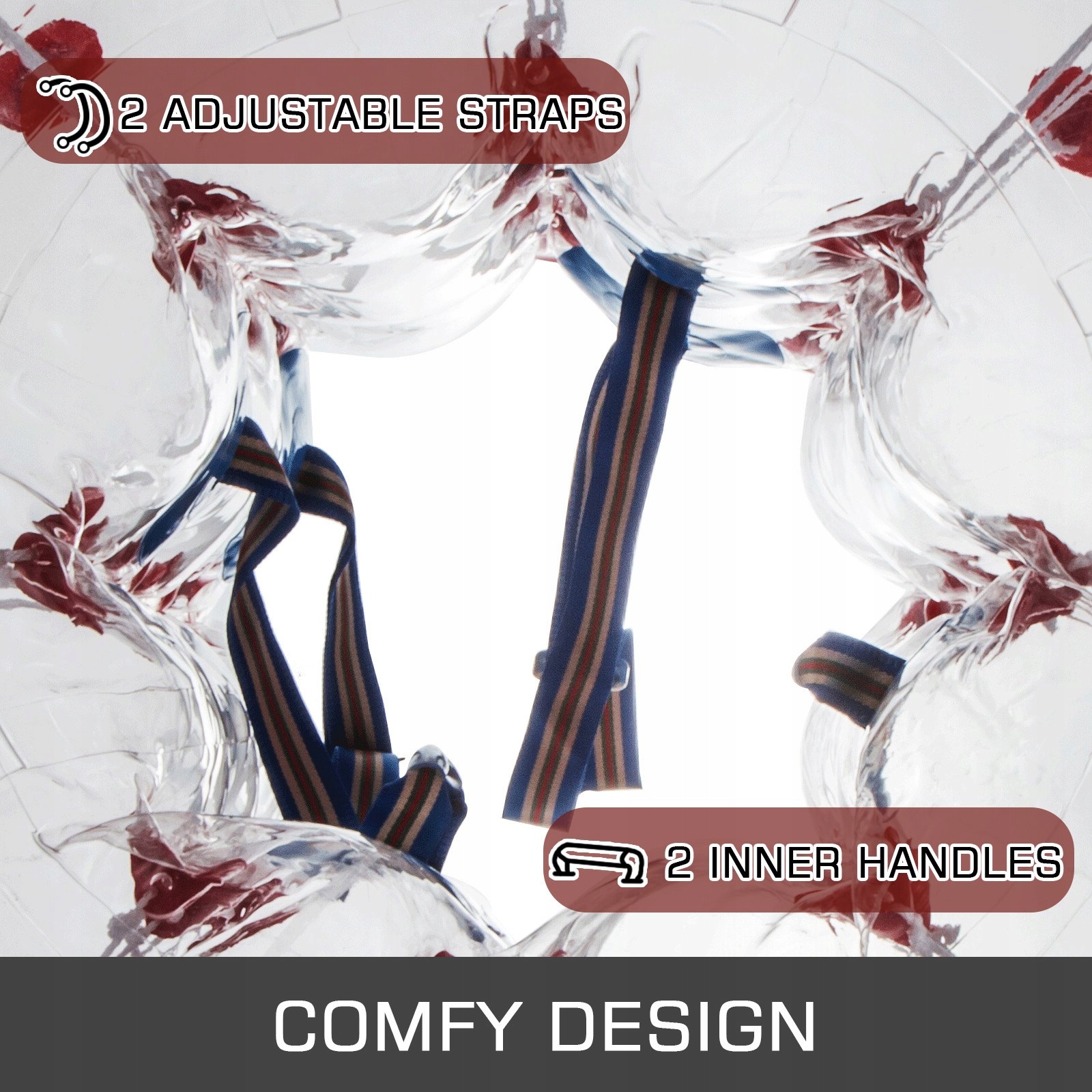 - Buper Ball має 2 ручки та 2 регульовані плечові ремені для утримання користувач міцно всередині. Якщо ви відпустите ручку, ремінь захистить вас.