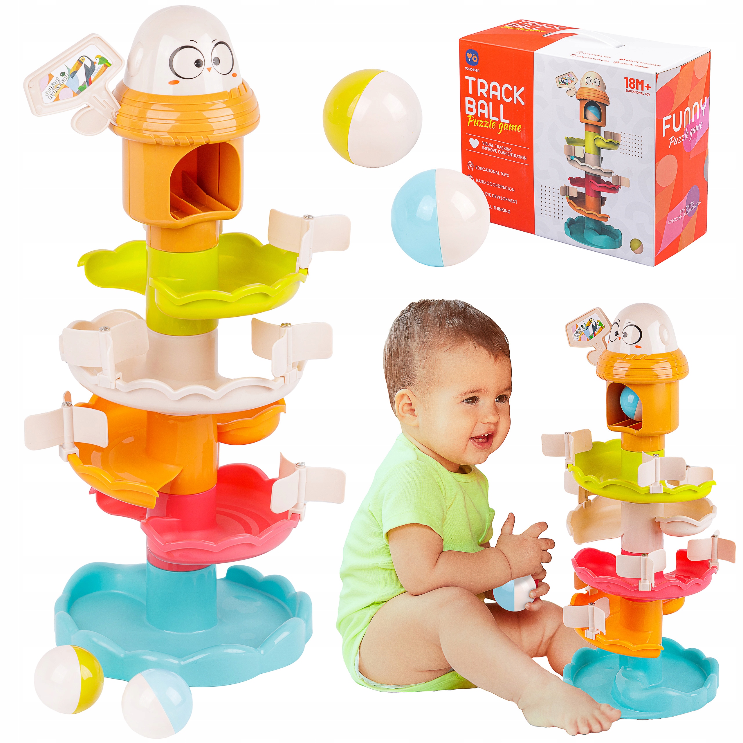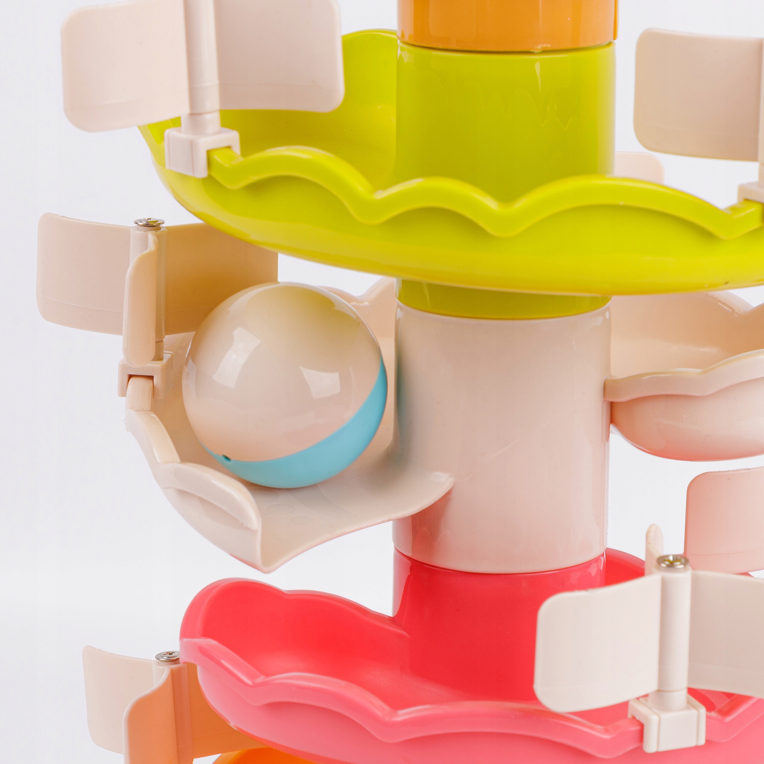 Доріжка для м'ячів - це надзвичайна забава, яка подарує вашим дітям багато радості та розваги. Ця барвиста конструкція дозволить дітям досліджувати та грати. Набір містить дві кульки, які рухаються вниз через вежу. Діти можуть спостерігати, як вони прискорюються, створюючи незабутні моменти, сповнені хвилювання.
