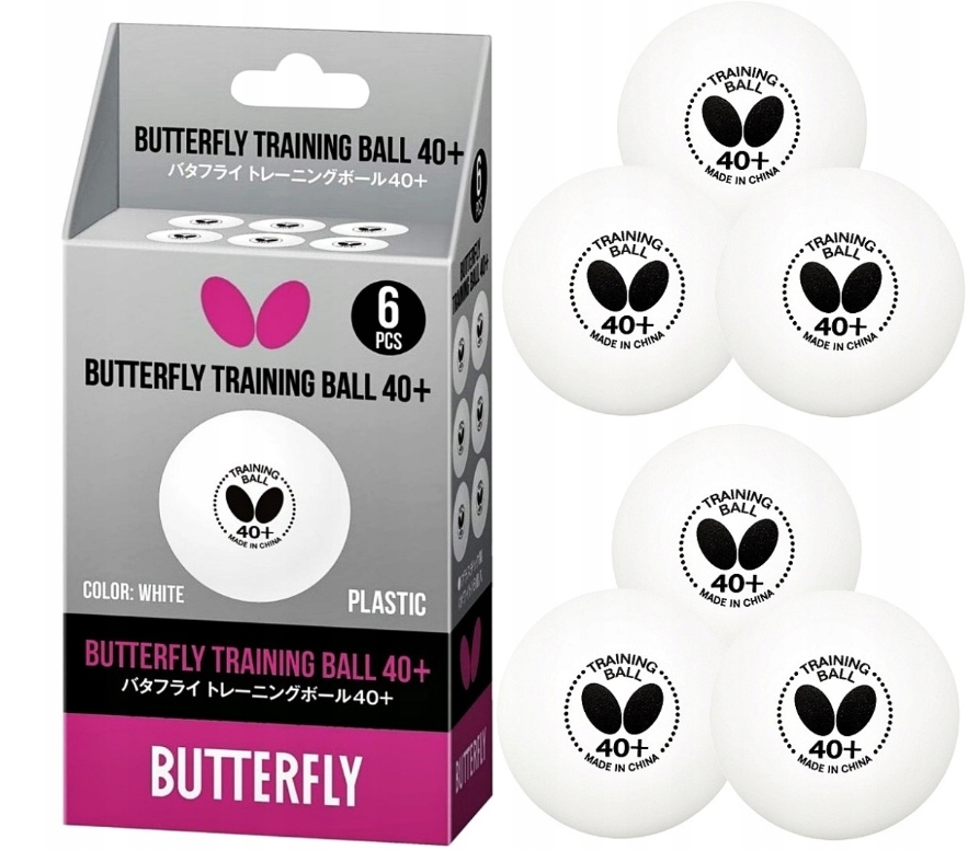 М'ЯЧИКИ BUTTERFLY ДЛЯ НАСТІЛЬНОГО ТЕНІСУ пінг-понг тренувальні 6 шт. білі