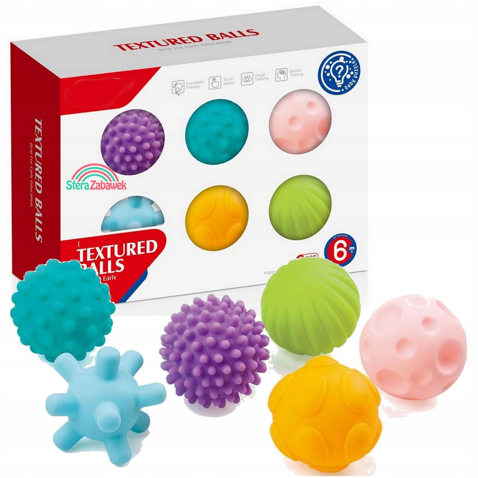 Набір із 6 предметів: набір містить 6 кульок із різними текстурами та кольорами, які забезпечують різноманітні сенсорні враження під час масажу та терапії.