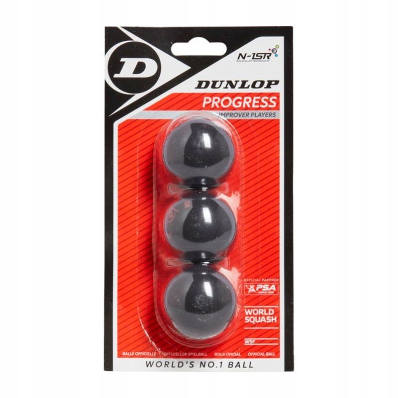 Dunlop Progress - м'ячі для сквошу, призначені для рекреаційних гравців і новачків. Вони на 6% більші, а підстрибують на 20% вище, ніж змагальний м’яч Dunlop Pro. Схвалено WSF (Всесвітньою федерацією сквошу). Dunlop є світовим лідером у виробництві та продажу м'ячів для сквошу. Наразі 95% світового ринку м’ячів належить Dunlop.