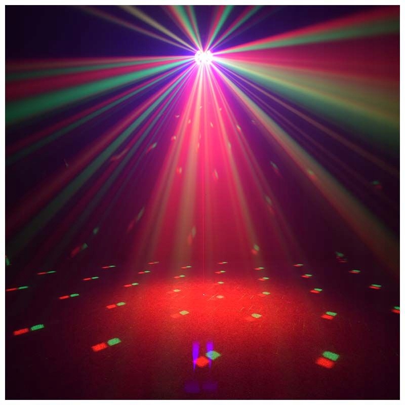 Light4Me Turbo Flower може створити багато світлових ефектів, які зроблять будь-яку вечірку привабливішою. Одна з них — стільникова півсфера, яка діє як обертова дзеркальна дискотечна куля, випромінюючи кілька кольорових пучків світла, але це ще не все. 4 LED PAR діоди потужністю 6 Вт здатні барвисто освітлювати танцювальний майданчик, а ще 4 створюють стробоскопічний та ультрафіолетовий ефекти, викликаючи флуоресценцію деяких кольори. Вони доповнюються червоним і зеленим диско лазером для ще кращого ефекту на танцполі!