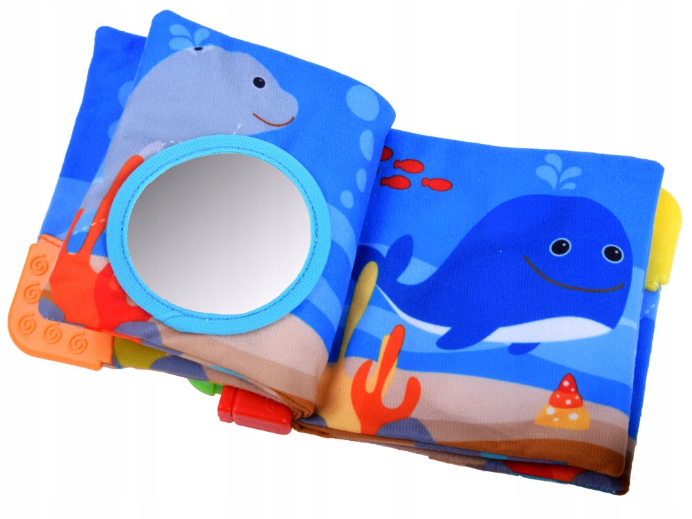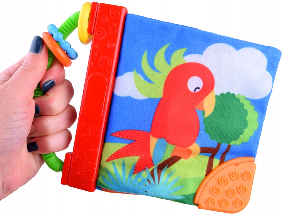 - Перша книжка з матеріалами — чудова ідея для розвитку сприйняття вашої дитини. Виготовлена з м'якого, приємного на дотик матеріалу. Складається з восьми сторінок. Книжка доступна в трьох версіях: Перша з сонцем, місяцем, тваринами та цифрами має пищалку. У другому варіанті з морськими тваринами на першій сторінці є дзеркальце, брязкальце та пищалка, а на першій сторінці зображено африканських тварин (зебра, слон, жираф...), а на останній сторінці – два писки. .