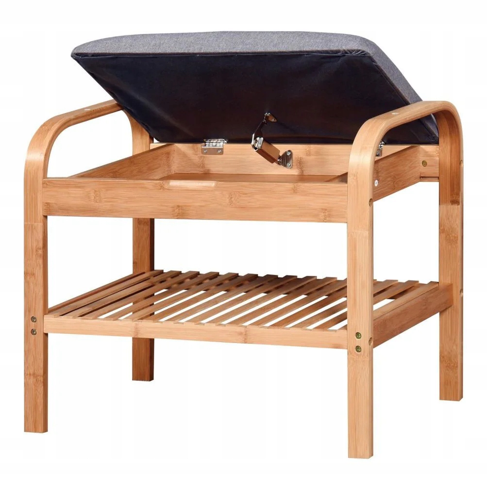 М'яка дерев'яна лава з полицею для взуття для передпокою ST12 Bamboo Ash Grey Halmar