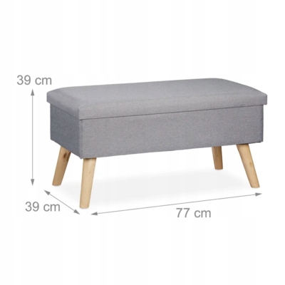 Завдяки красивому поєднанню натурального вигляду дерев'яних ніжок і оббивки з тканини, схожої на льон, диван привертає увагу. Завдяки гарному дизайну табурет не тільки стане справжнім прикрасою передпокої, спальні чи вітальні, але й надасть додатковий простір для зберігання. Це місце розташоване під м’якою кришкою, яка також служить сидінням і легко знімається. Місце для зберігання можна використовувати для різноманітних речей, таких як подушки, ковдри, іграшки та журнали.
