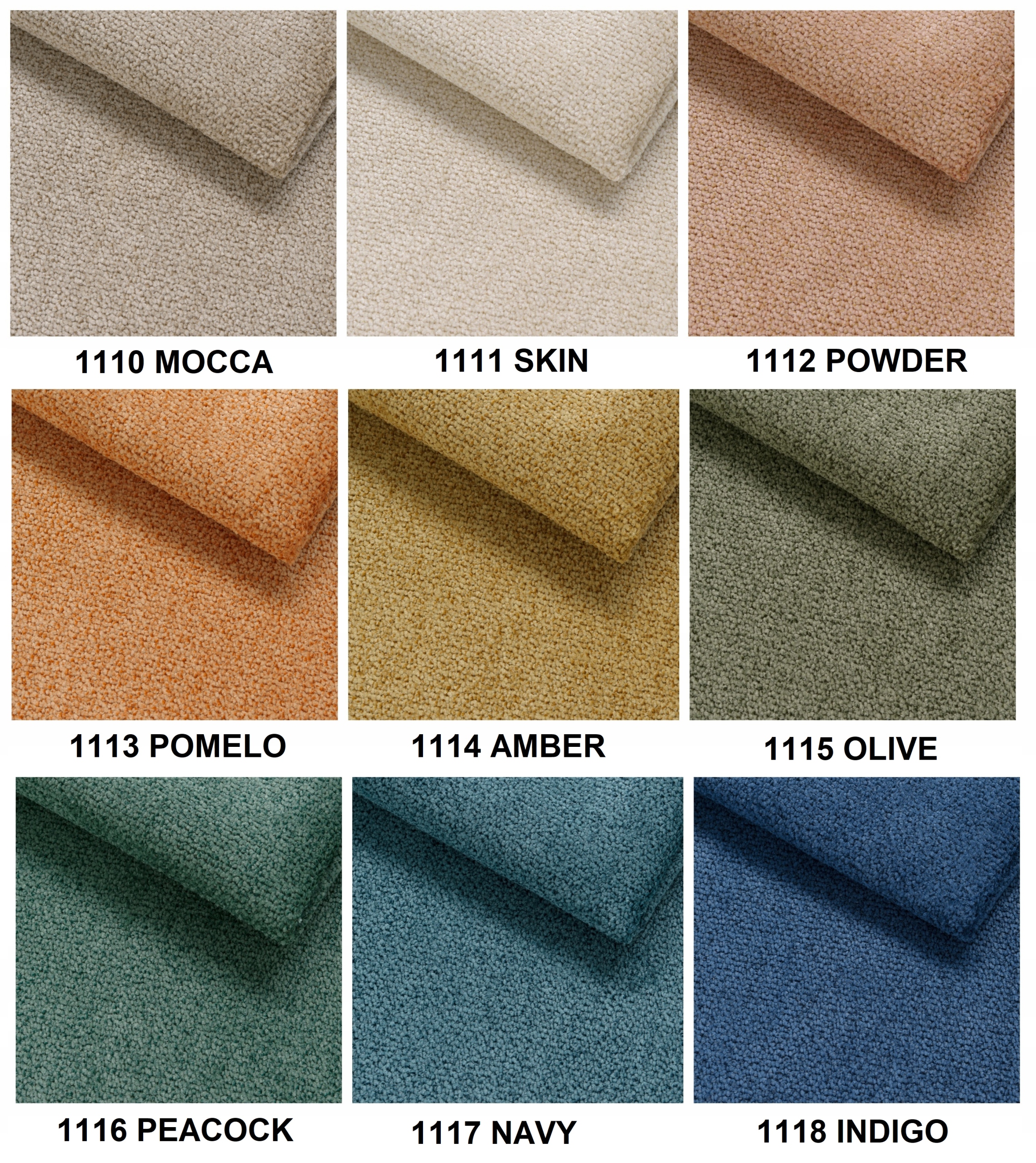 - upholstered furniture: sofas, armchairs, poufs, chairs, bed headboard