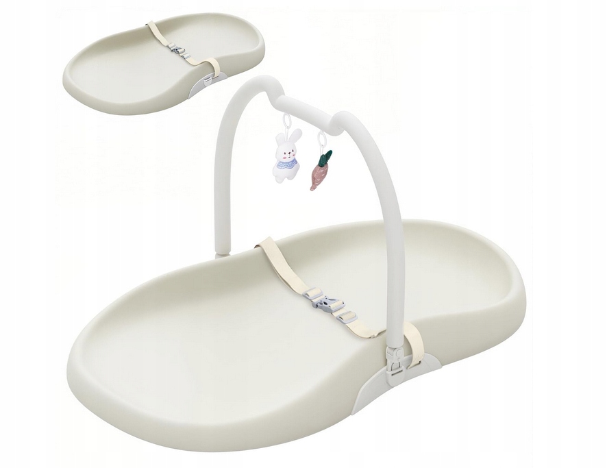 Ручка з двома іграшками (зайчик і морква) привертає увагу дитини та заспокоює його під час зміни прокрутки. Пов’язку на голову можна скласти або повністю зняти, пристосувавши пеленальний столик до своїх потреб.