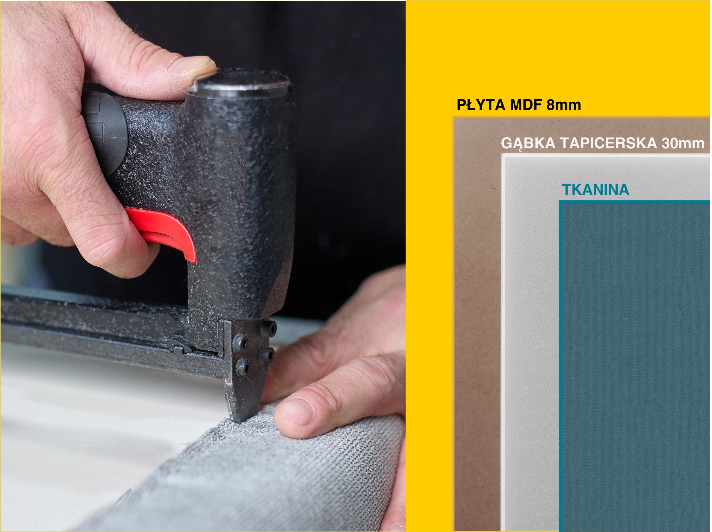 Кожна тканина, яку ми використовуємо, характеризується дуже високою міцністю. Ми використовуємо матеріали, отримані безпосередньо від провідного постачальника в Польщі, що гарантує якість і безпеку. Виробники м’яких панелей часто використовують складні описи тканин, приховуючи замінники значно нижчої якості під відомими назвами.