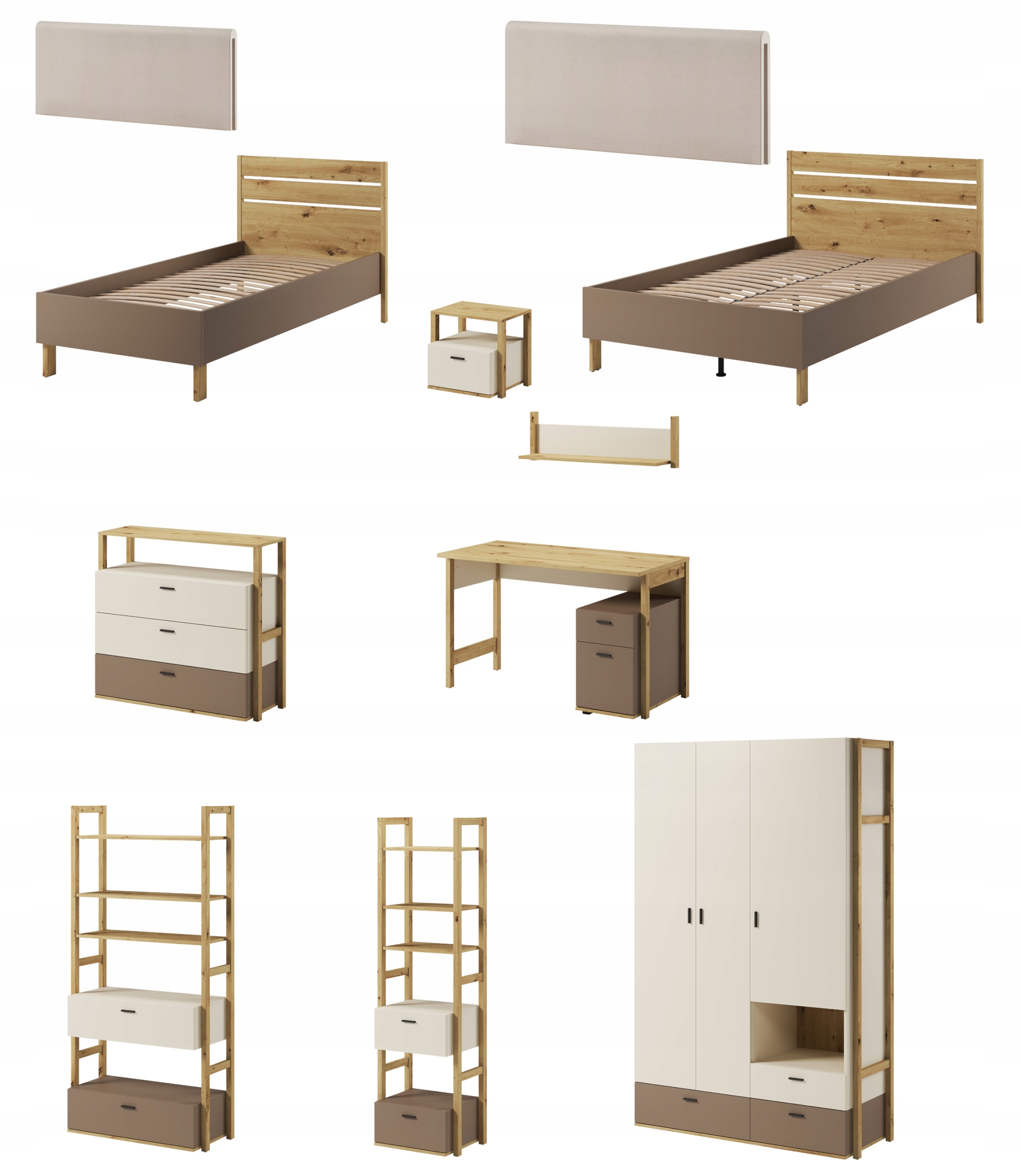 - включно з такими елементами, як: комоди, полиці, письмовий стіл, стіл, ліжка та шафа для одягу - кожен з них чудово виглядає окремо, як виразний елемент інтер'єру