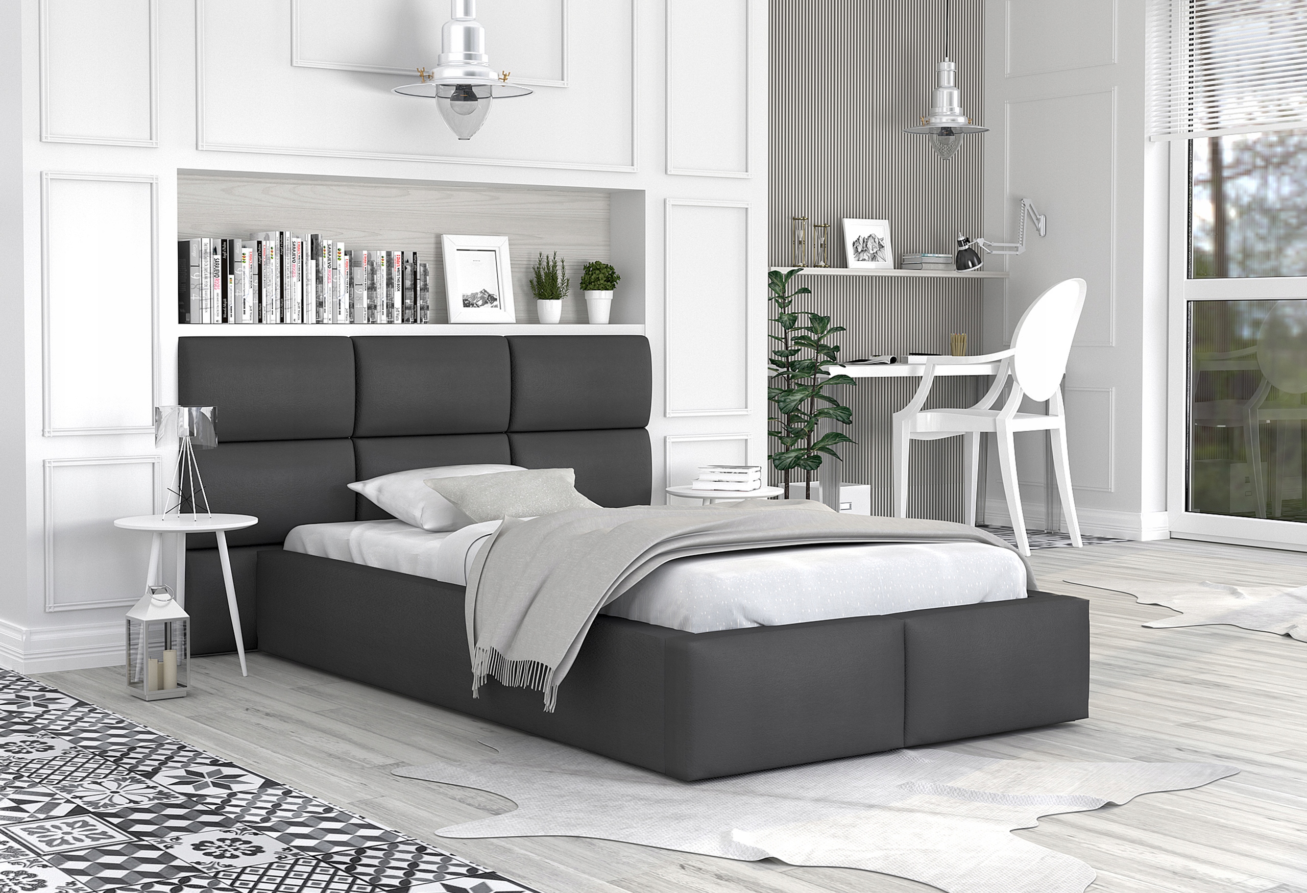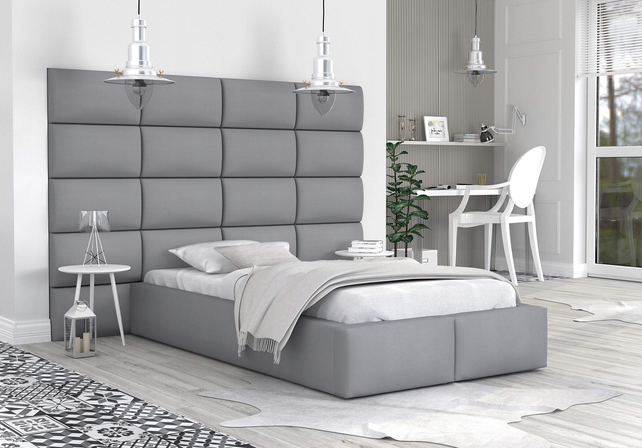 - Оббивка ліжка та стінові панелі виготовлені зматеріалу Trinity