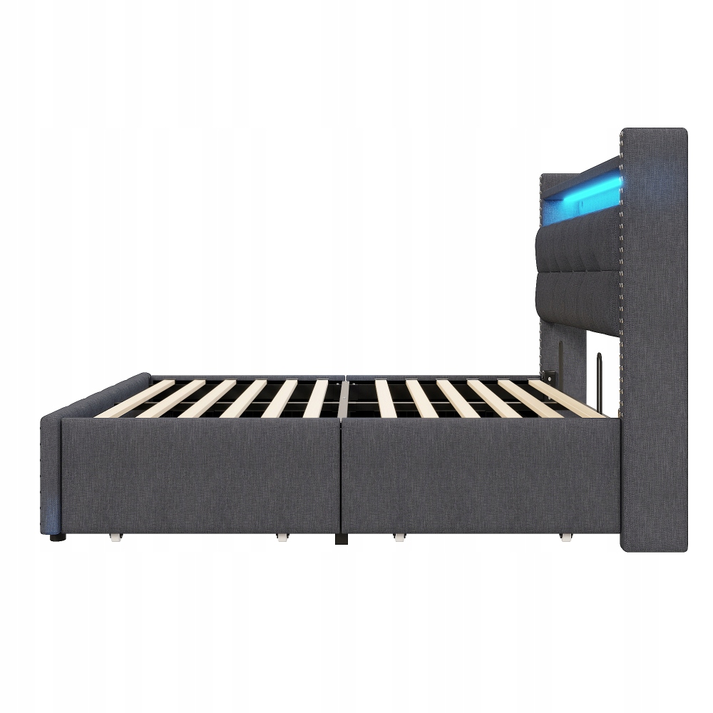 Узголів’я та узголів’я цього м’якого ліжка оснащено світлодіодним освітленням зі зміною кольору, яке дозволяє регулювати колір світла відповідно до вашого настрою та події, покращуючи таким чином атмосферу спальні.