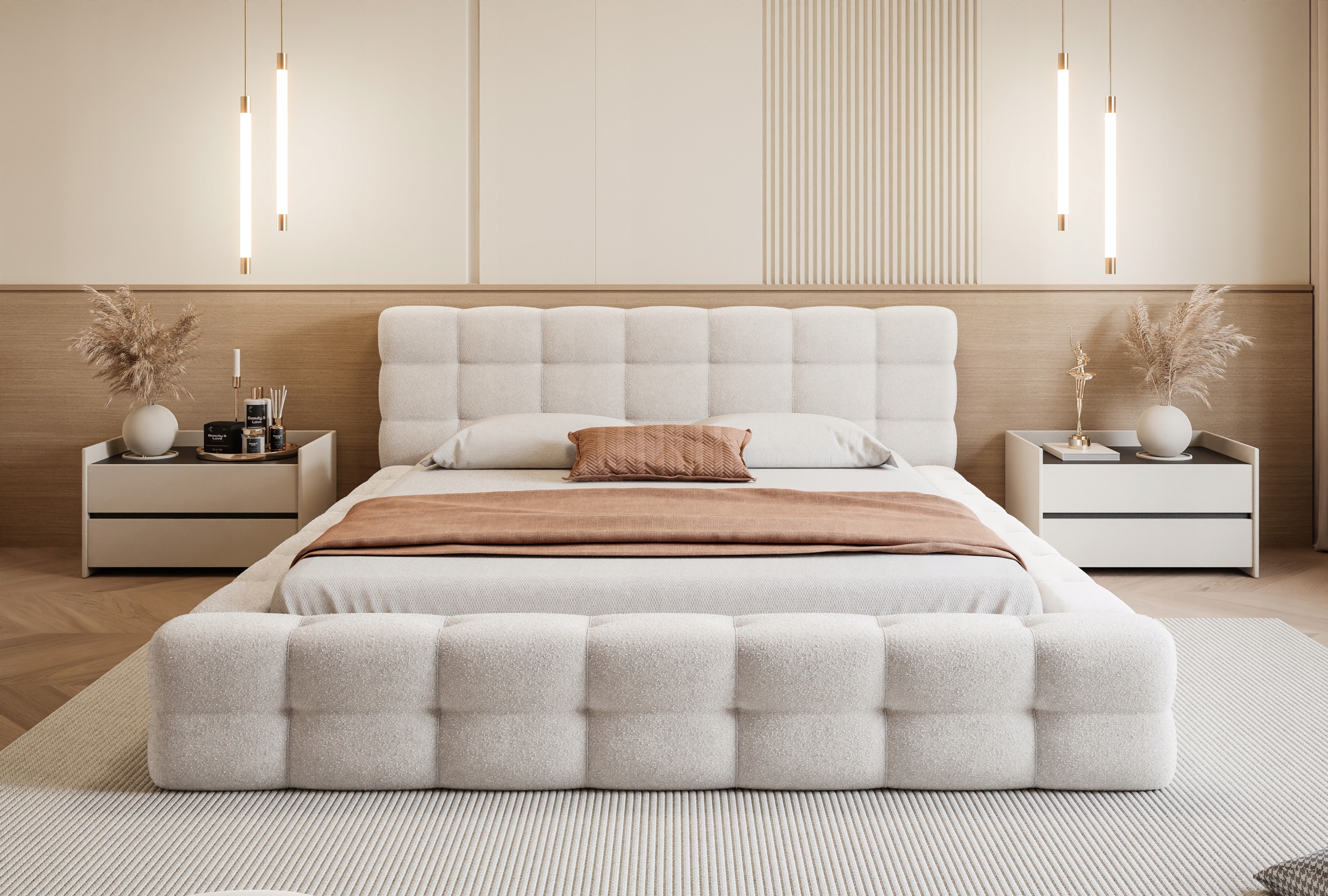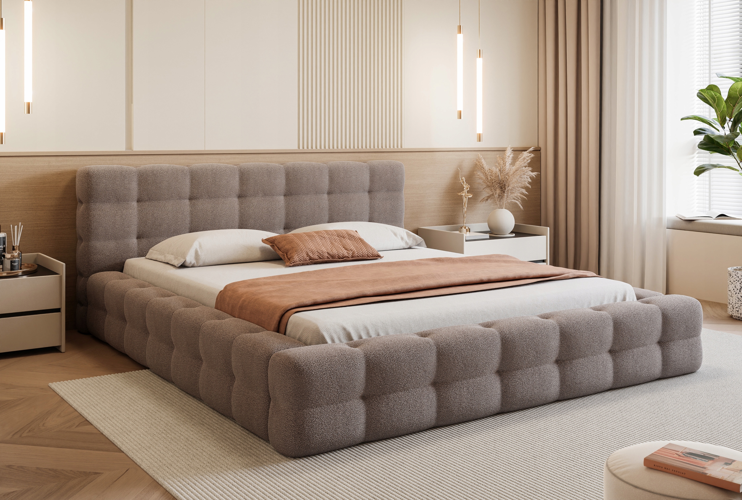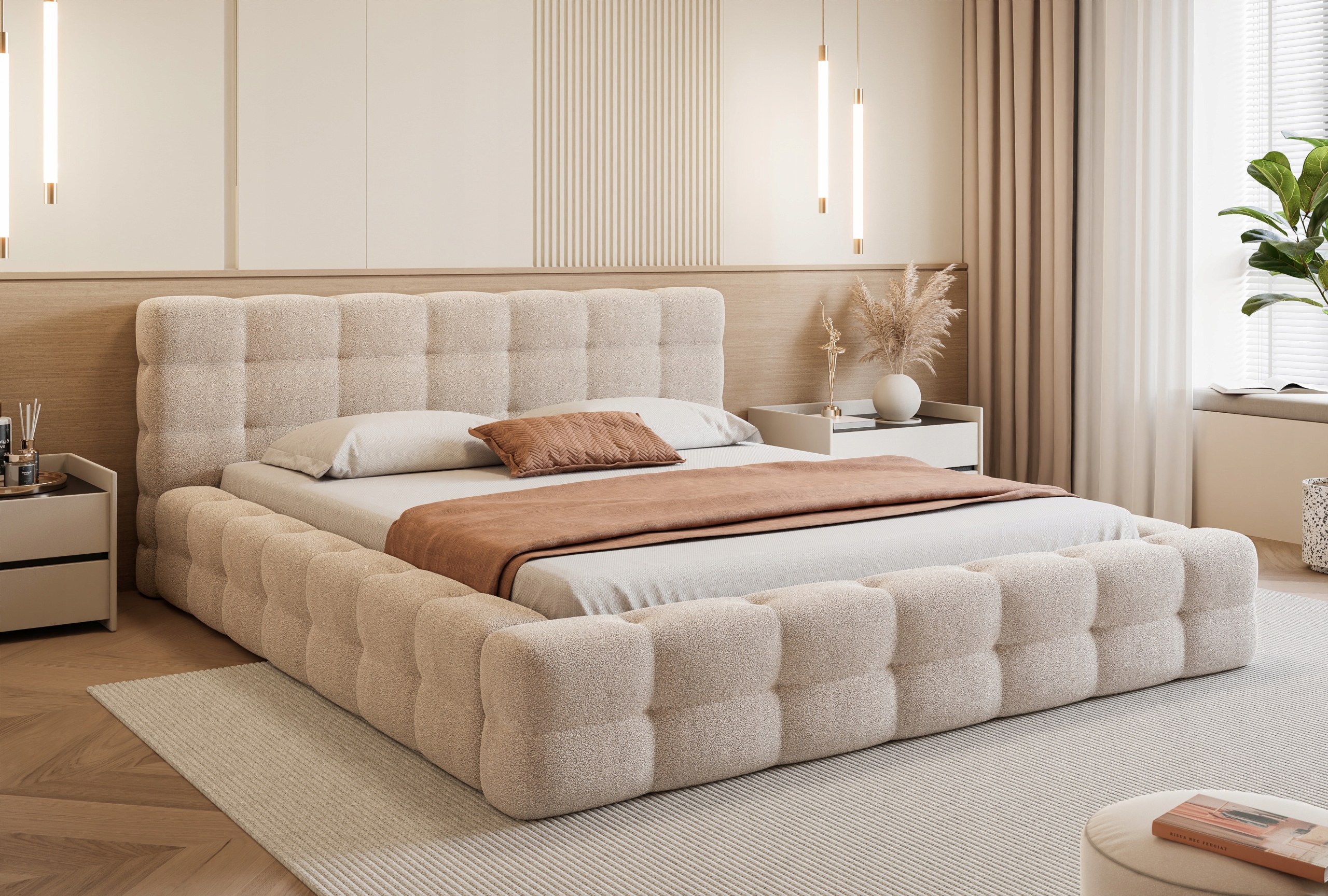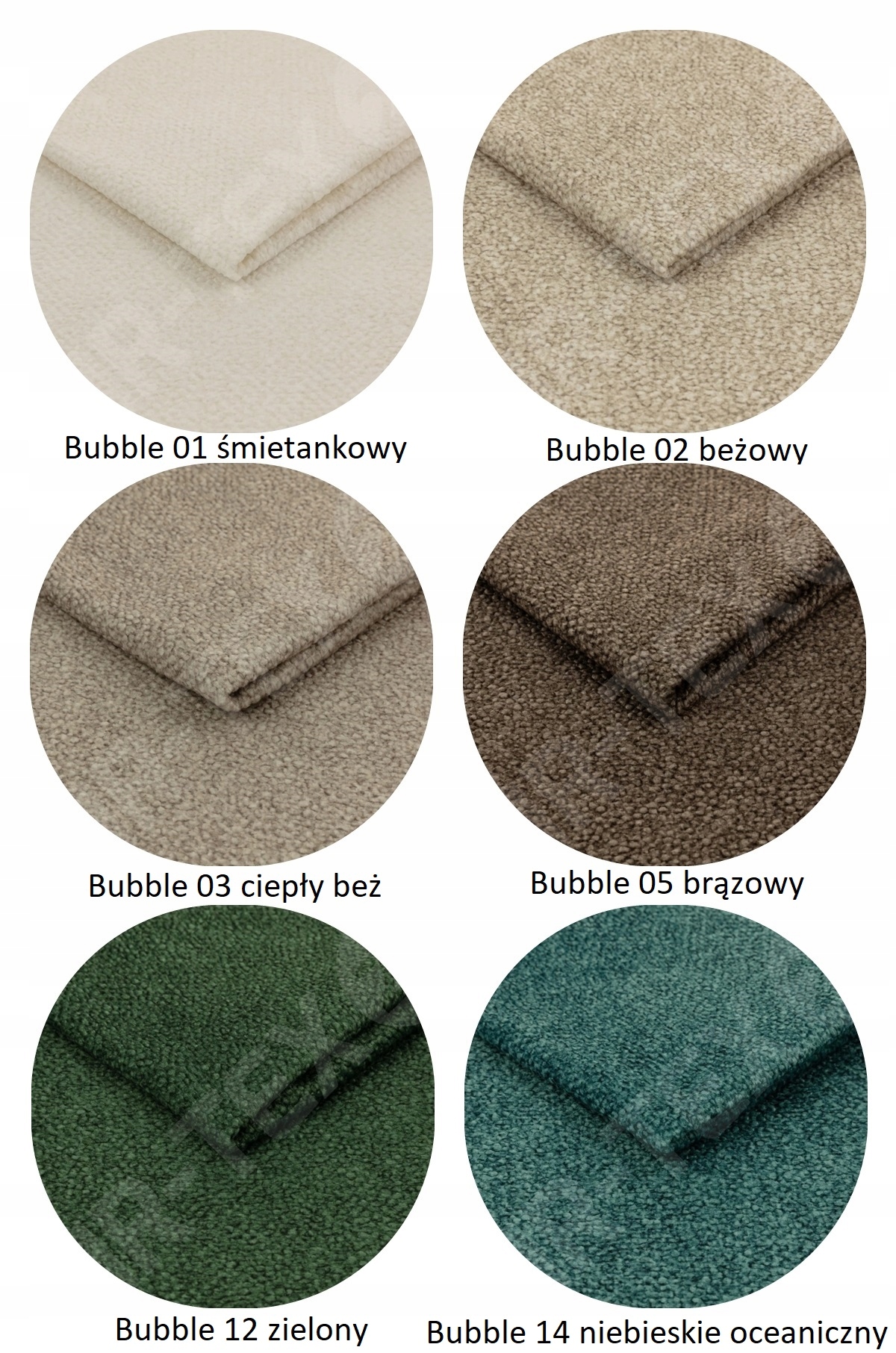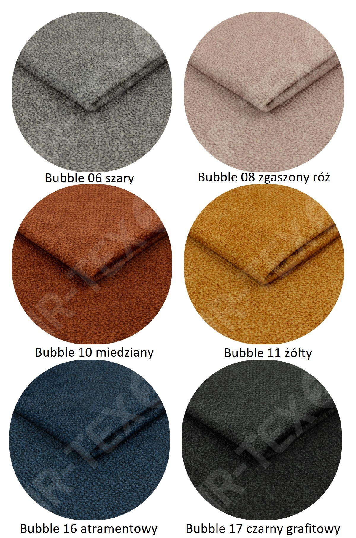 Bubble Fabric — м'ясна, пухнаста і приємна на дотик оксамитова тканина білого відтінку, текстура якої нагадує бульбашки. Це привертає увагу і спонукає до тісного контакту. При дотику трохи змінює відтінок. Забезпечує комфорт і допомагає зняти тривогу. Характер тканини підходить для інтер'єрів, оформлених в бохо або скандинавському стилі. Незалежно від того, наскільки велика кімната, її присутність додасть стилю кожній з них.
