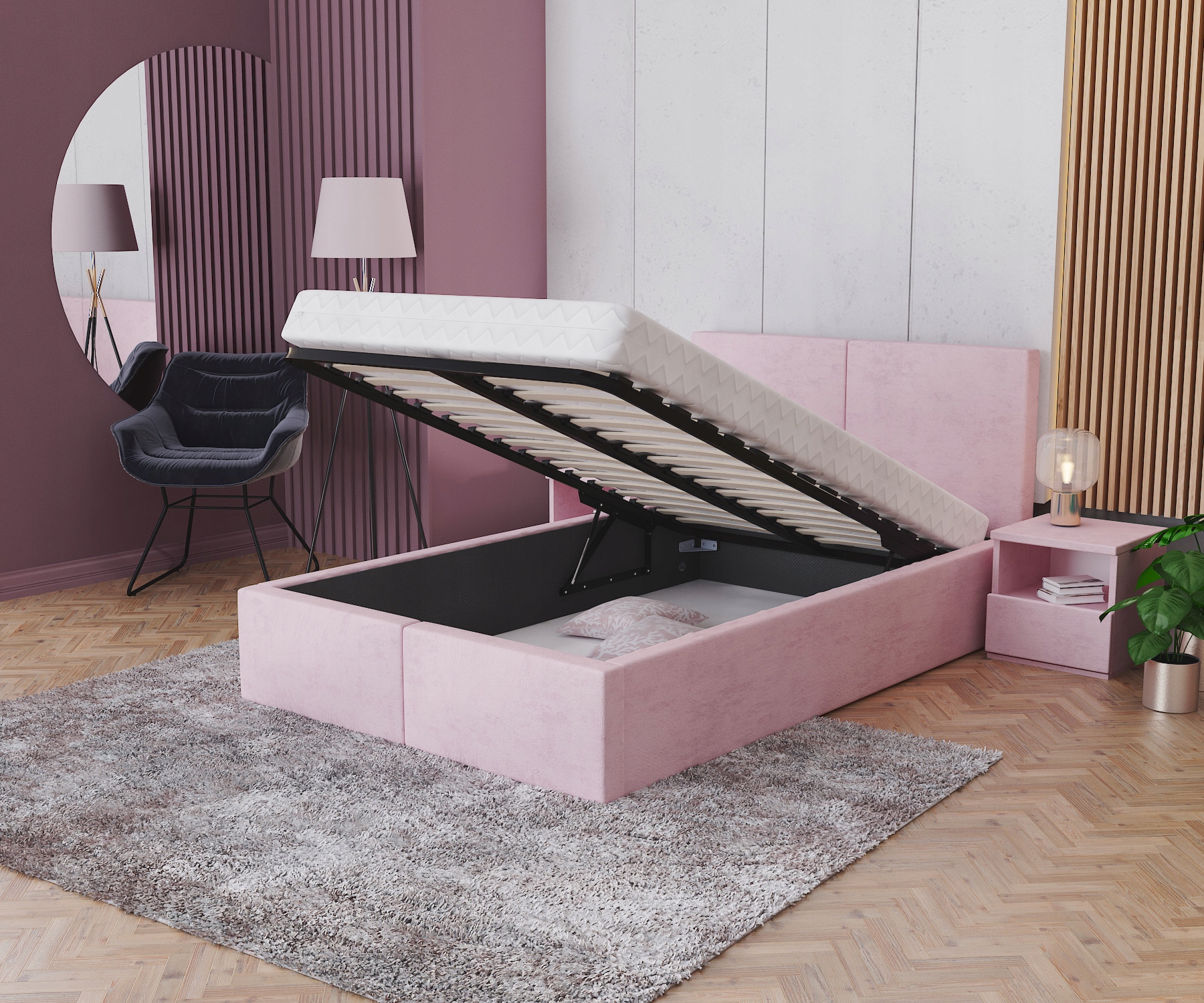 - Великий контейнер для постільної білизни під каркасом ліжка