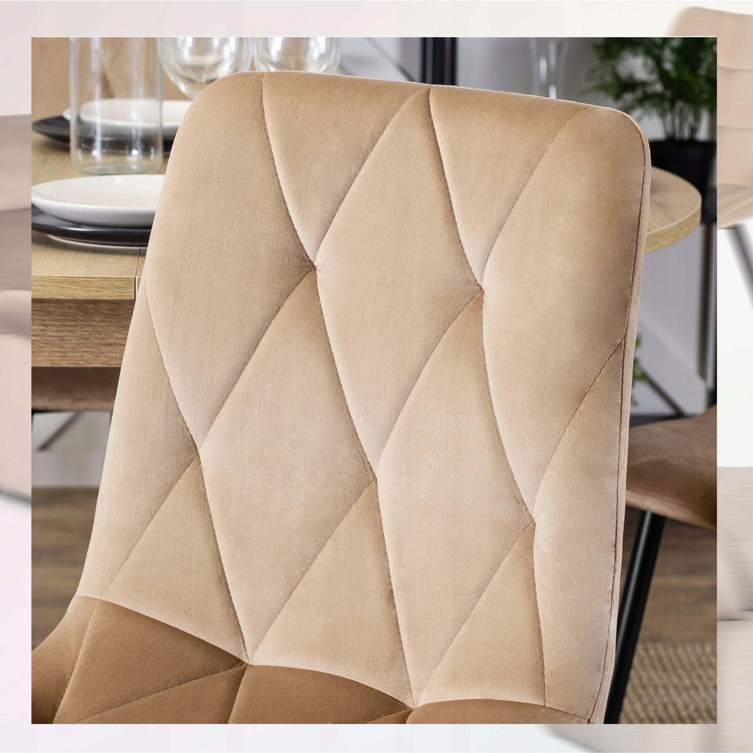 Велюрове м'яке крісло для їдальні горища Робін Бежевий стьобаний ⭐⭐⭐⭐⭐