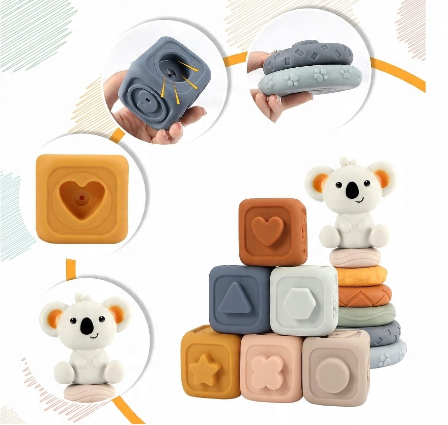 ❤️ Чарівний ведмедик коала - м'який плюшевий ведмедик, що входить до набору, може стати кульмінацією вежі з блоків або піраміди з дисків. Його можна використовувати як самостійну іграшку або як прорізувач для малюка.