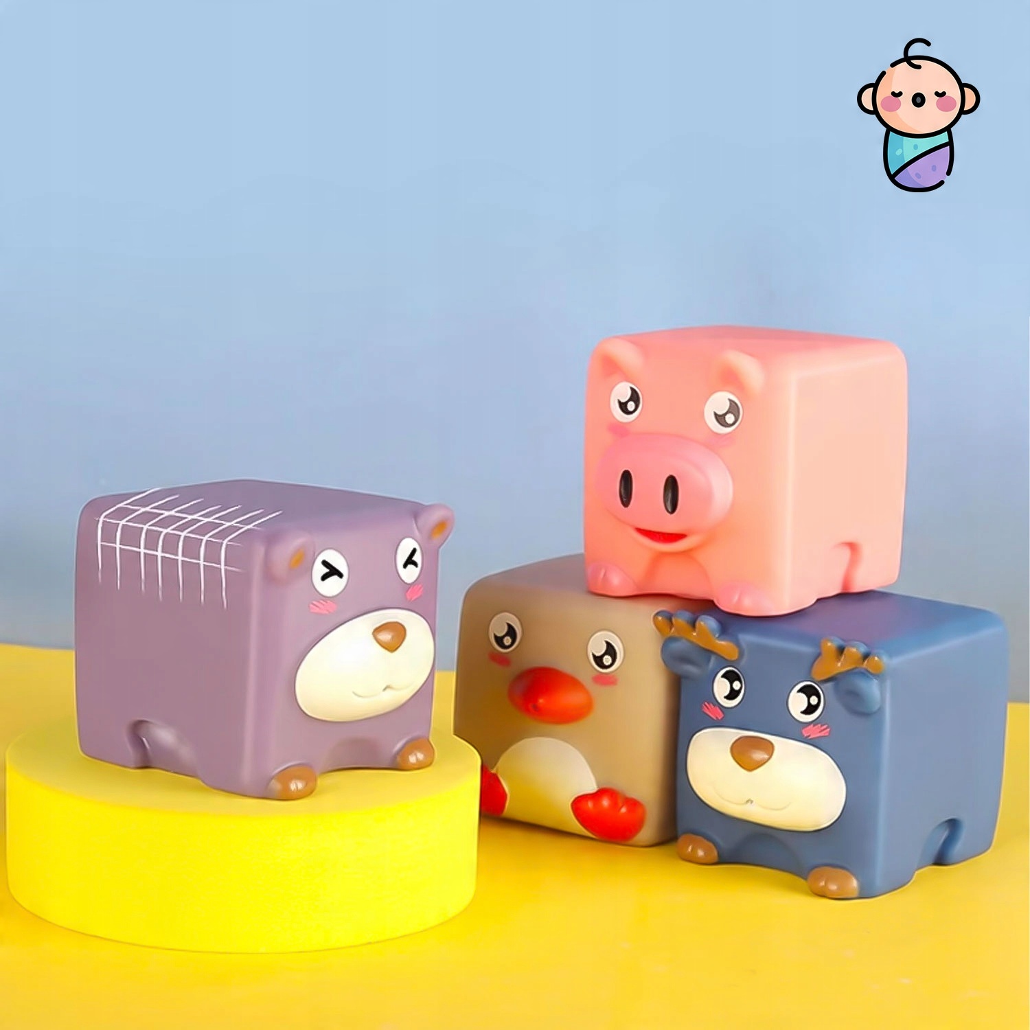 ❤️ Елементи, що видають звукі - пищать при стисканні. Вони сприяють розвитку зору, дотику та когнітивних навичок дитини.