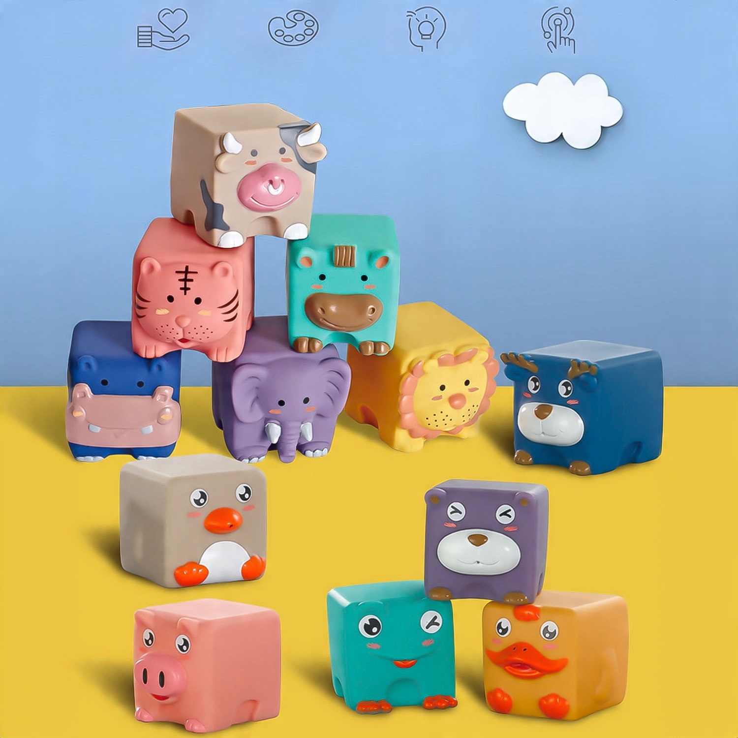 М'ЯКІ КРЕАТИВНІ СЕНСОРНІ БЛОКИ ТВАРИНИ 12 ШТ ДЛЯ ДИТЯЧИХ ПРОРЕЗИВАЛЬНИКІВ