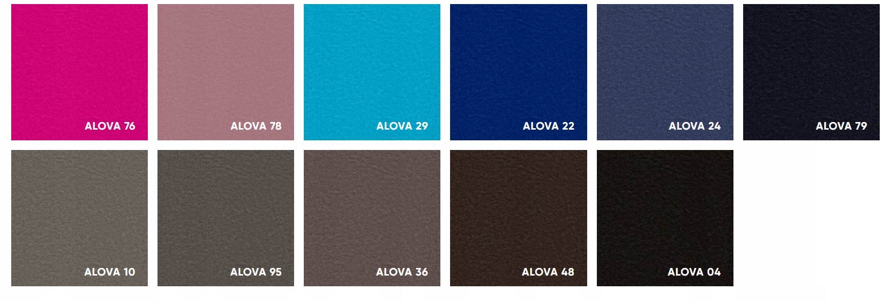 Тканина ALOVA - популярний трикотаж. Високоеластична оббивна тканина, що характеризується високою міцністю, стійкістю до стирання та простотою догляду. Широка палітра кольорів, дивовижні, яскраві кольори. При дотику ми відчуваємо дрібний пух, приємний на дотик. Стійкість до стирання: 90 000 циклів