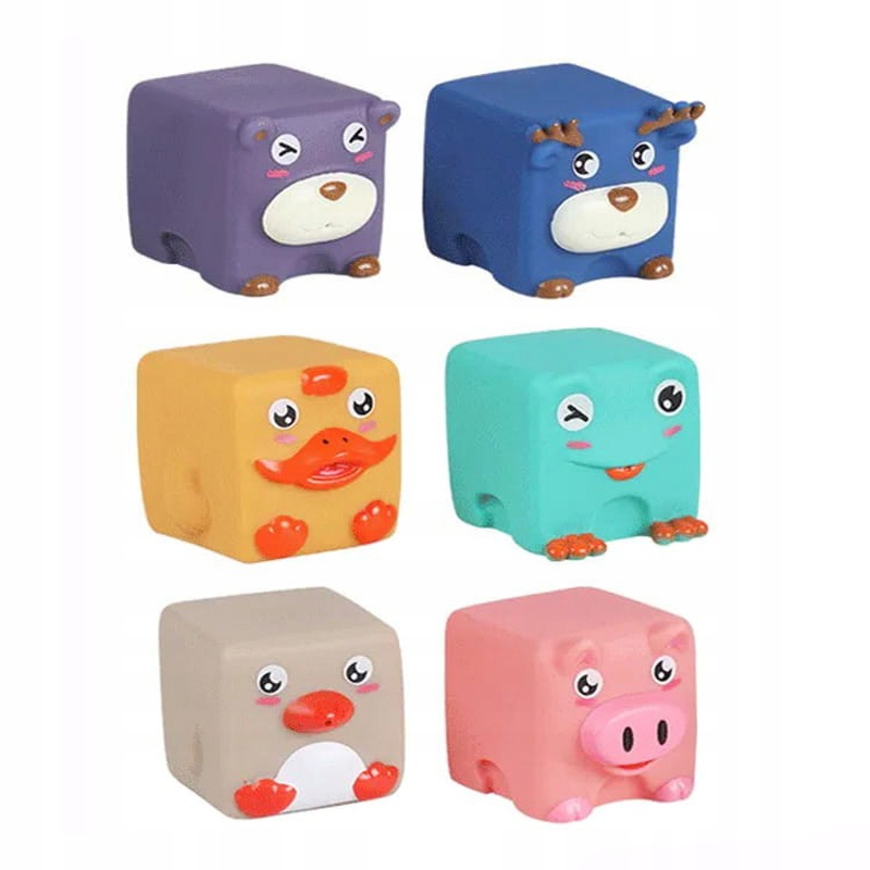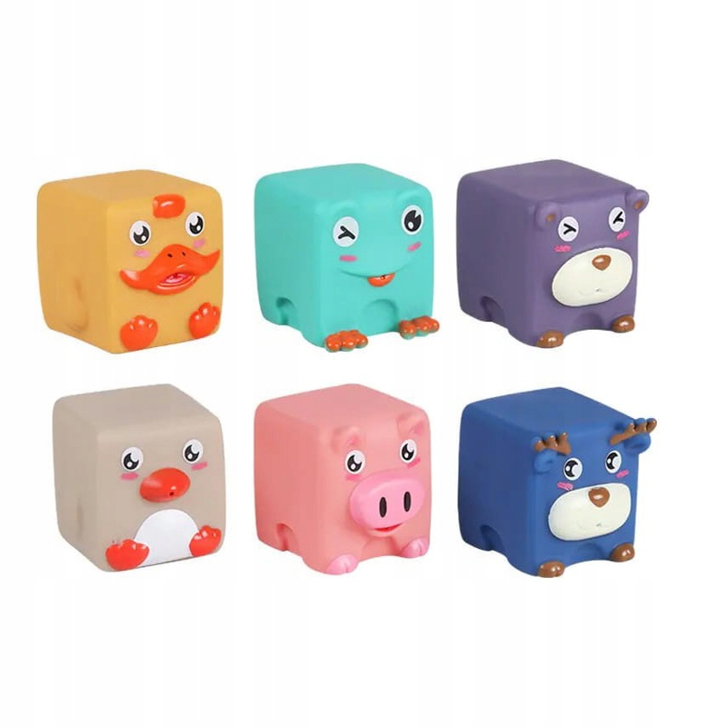 6 милих тварин: качка, порося, лисичка, ослик, жаба та олень. Вашій дитині легко схопити тварин і пограти з ними. Вони розважать вашу дитину вдома, на прогулянці або в подорожі. Вони також зроблять купання приємнішим.