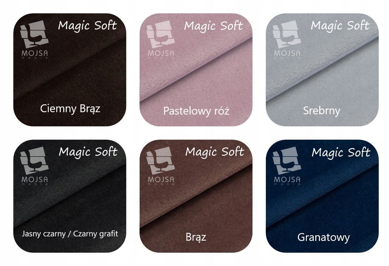Magic Soft FABRIC - оксамит, оббивна оббивна тканина. Поверхня характеризується ніжним блиском. Дуже м'який і приємний на дотик з помітним густим пушком, який розтушовується в залежності від положення волосся. Користується популярністю через свою м'якість і легкість чищення. Тканина має гідрофобну обробку, що запобігає лущенню і вбирає рідину природним шляхом. Крім того, тканина не схильна до сколювання.