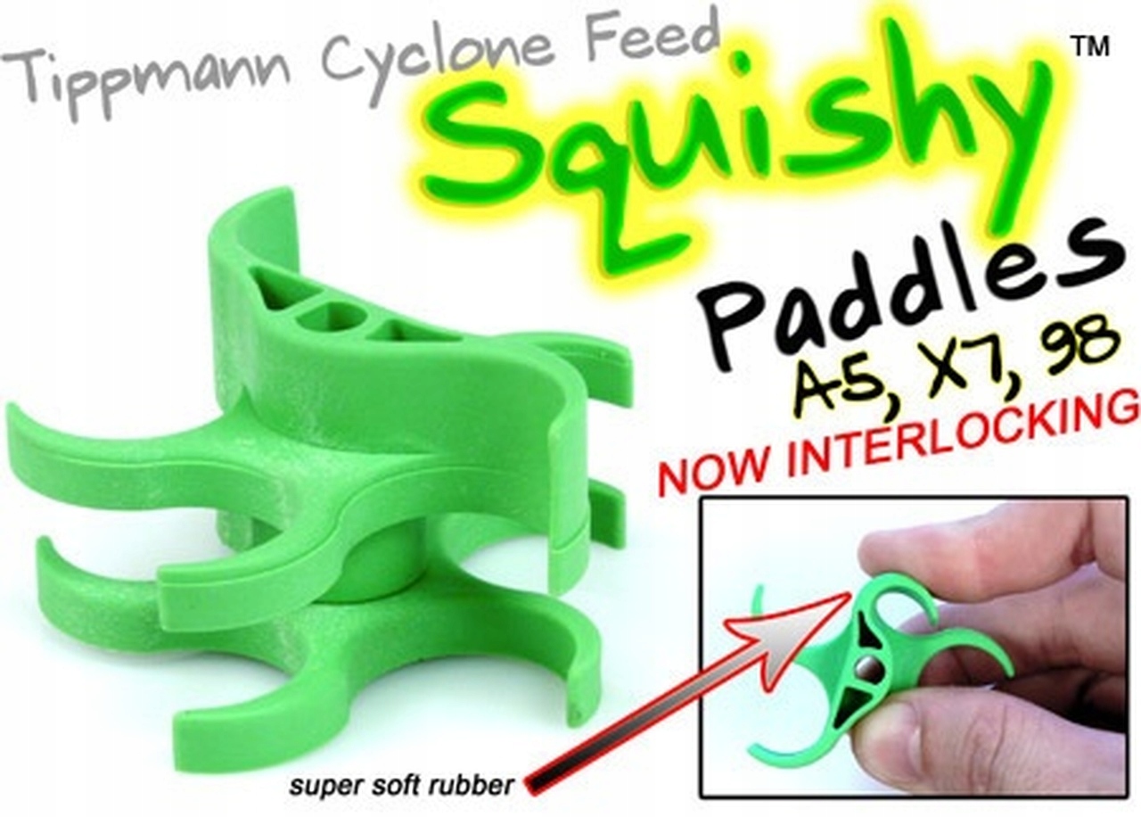 М'які леза для системи Cyclone у маркерах Tippmann 98, A5, X7. Для виготовлення лопатей використовувався гнучкий матеріал, що мінімізує ймовірність руйнування куль у циклоні. Заокруглені краї ще більше мінімізують ризик поломки. Менша кількість розбитих м’ячів покращує точність вашого маркера!