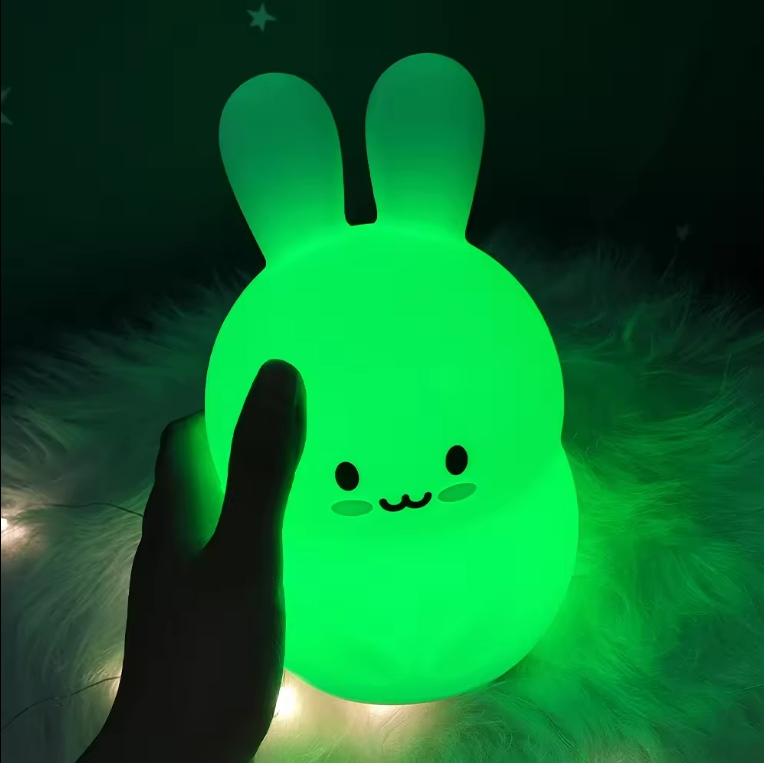М'який нічник для дітей, барвистий силіконовий кролик RGB LED