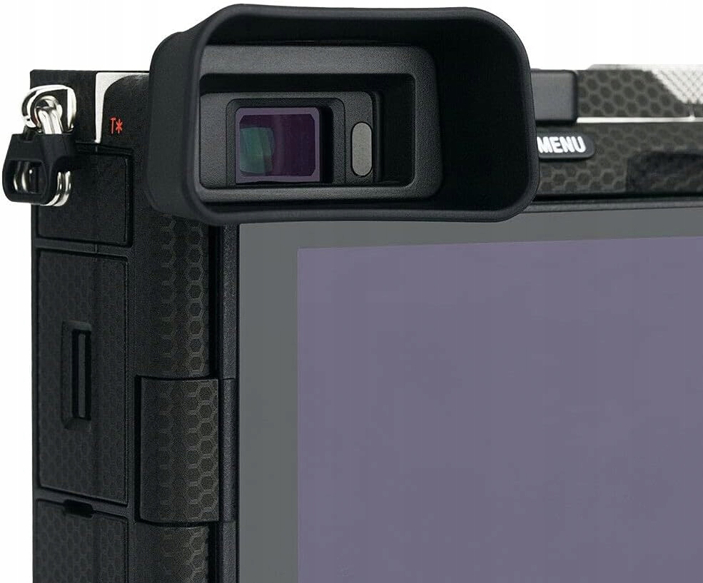 Довгий наочник камери Блокує потрапляння розсіяного світла у видошукач Ефективно захищає видошукач від ударів і подряпин Ергономічний дизайн краще підходить для очей М’який силікон забезпечує комфорт для очей, особливо для користувачів окулярів. Виготовлений із міцного АБС-пластику та м’якого силікону.