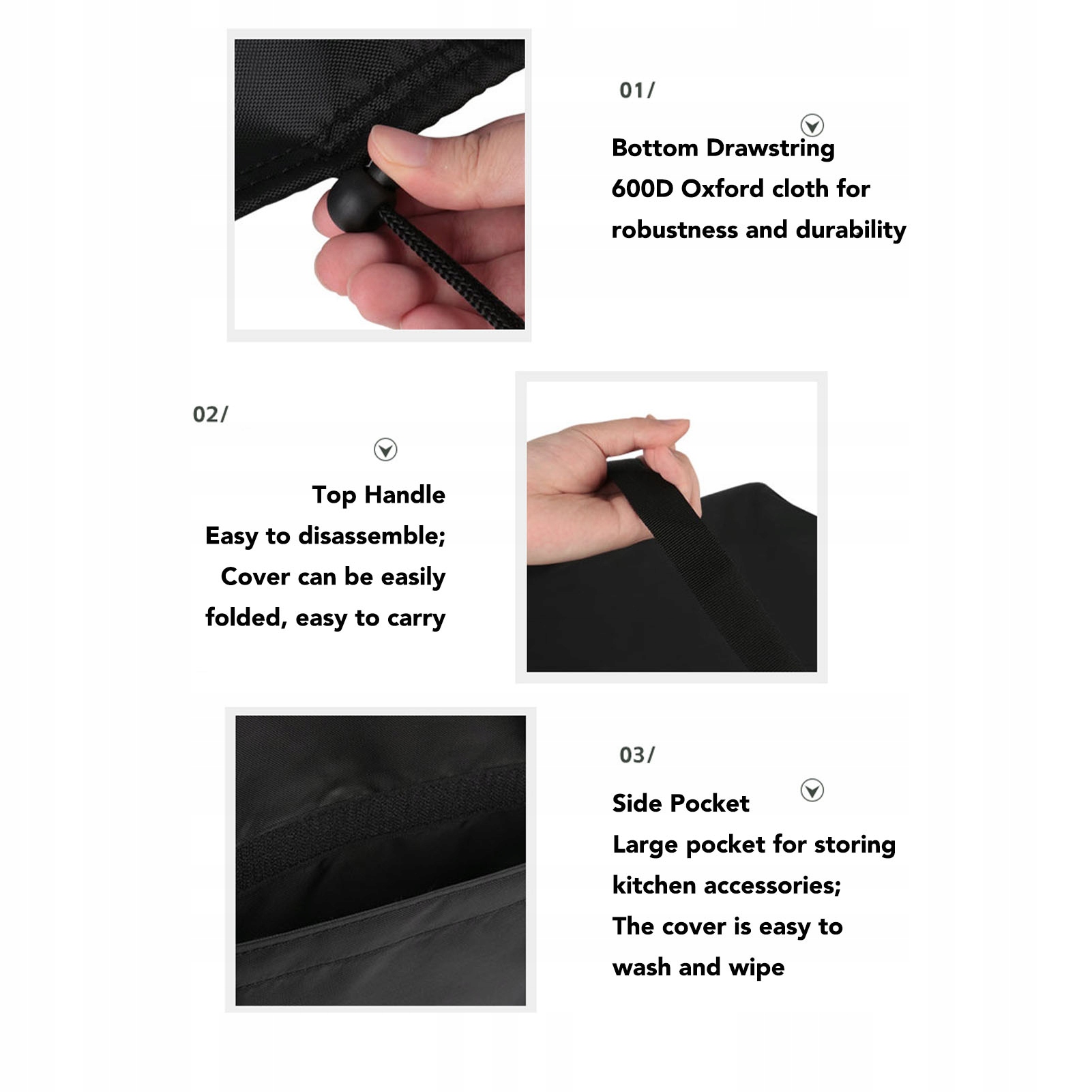 2. Твердий матеріал: виготовлений з 600d oxford тканини, цей пиловий покрив є необхідним захистом кухонного пристрою для запобігання води, пилу та інших потенційних загроз, що забезпечує тривалу продуктивність для найближчих років