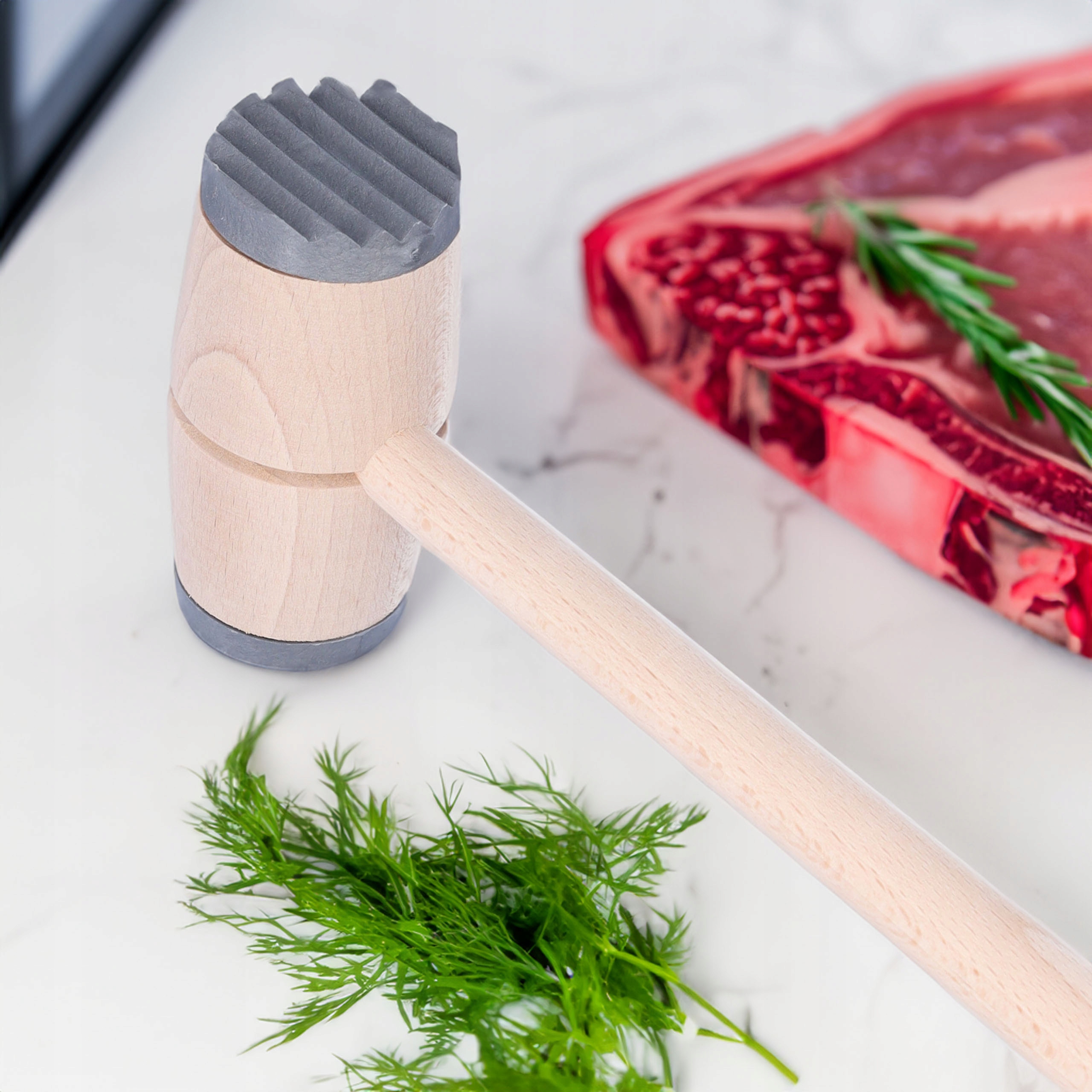 Розроблена для зручності, маточка має ідеальні розміри для роботи з більшими шматками м'яса. Його дерев’яна ручка забезпечує натуральне зчеплення та комфорт використання .