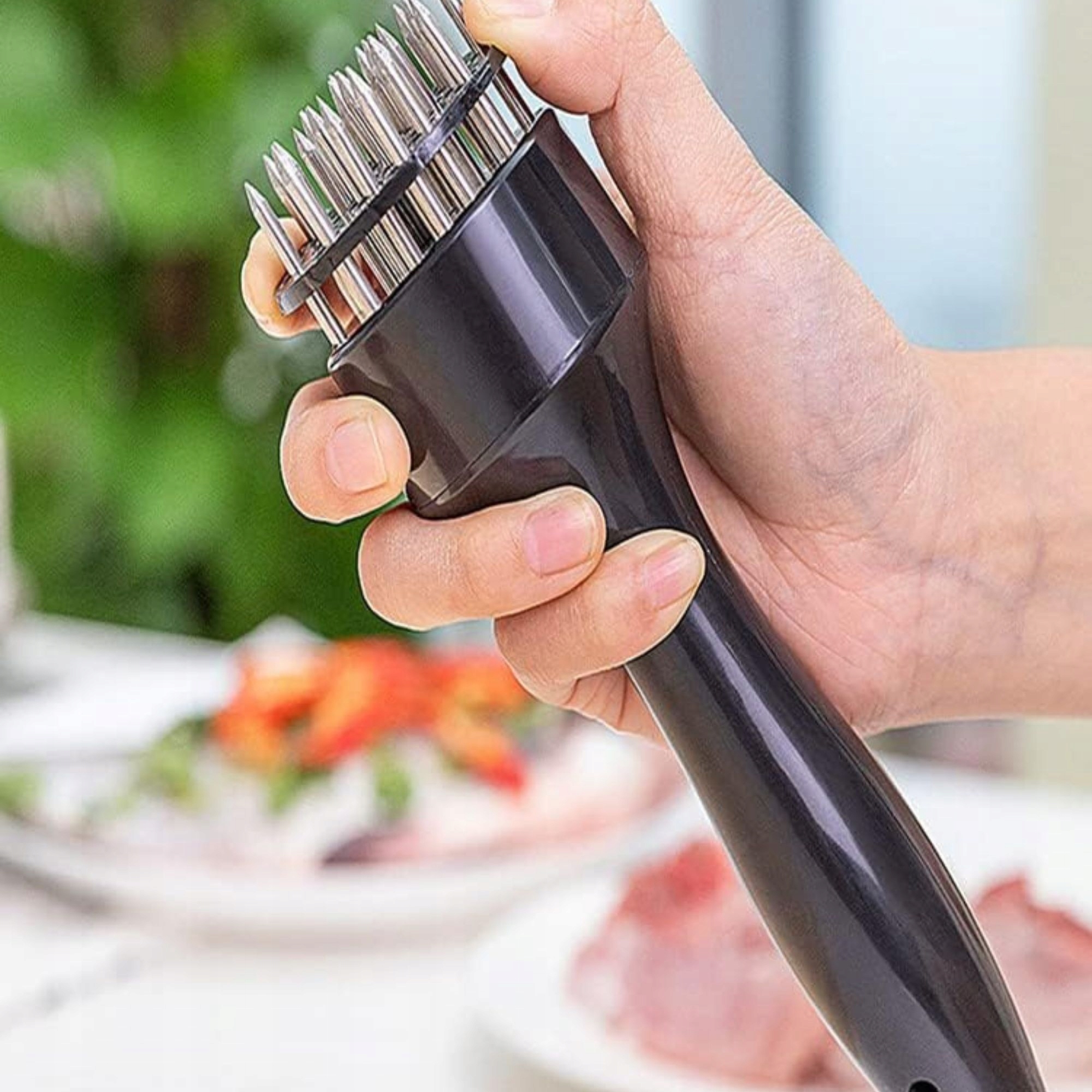оснащені 21 високоякісними лопатками з нержавіючої сталі у формі соснової голки, цей пом'якшення перетинає тверді м'ясні волокна без зусиль, укорочення часу приготування та забезпечення навіть крихкості.