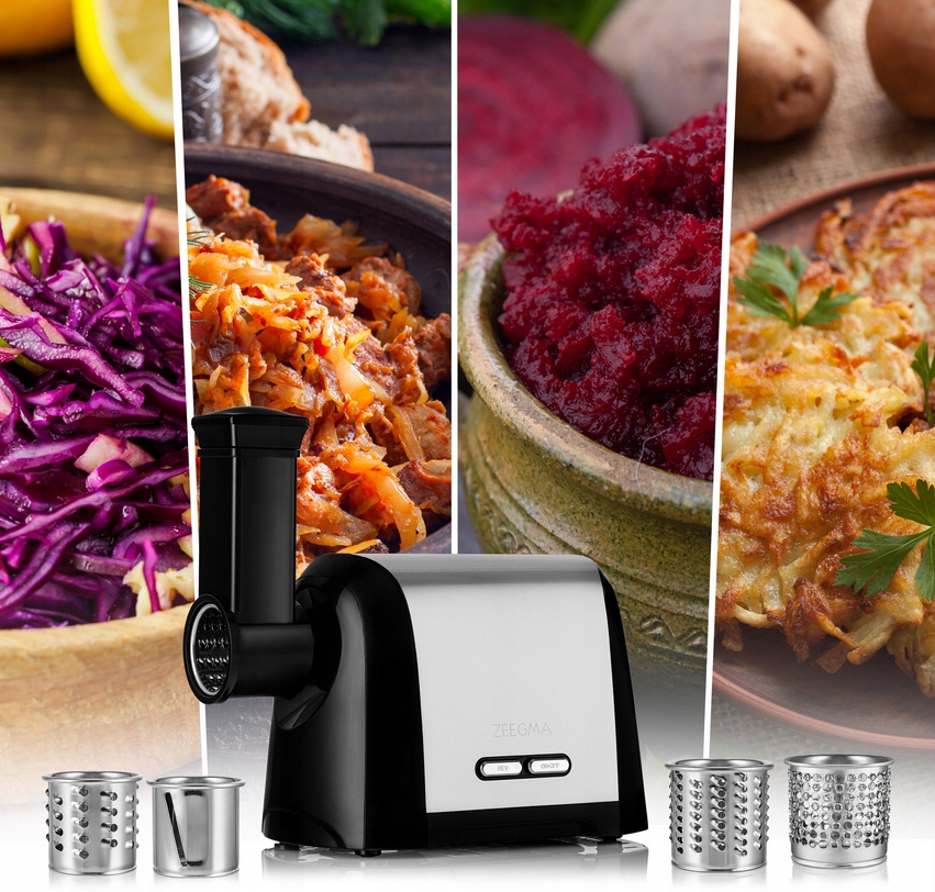 Zegma Molen Chef оснащений набором із трьох ріжучих дисків із різними розмірами отворів, завдяки яким ви можете готувати різноманітні страви. Диски можна використовувати не тільки для подрібнення м'яса, а й інших харчових продуктів.