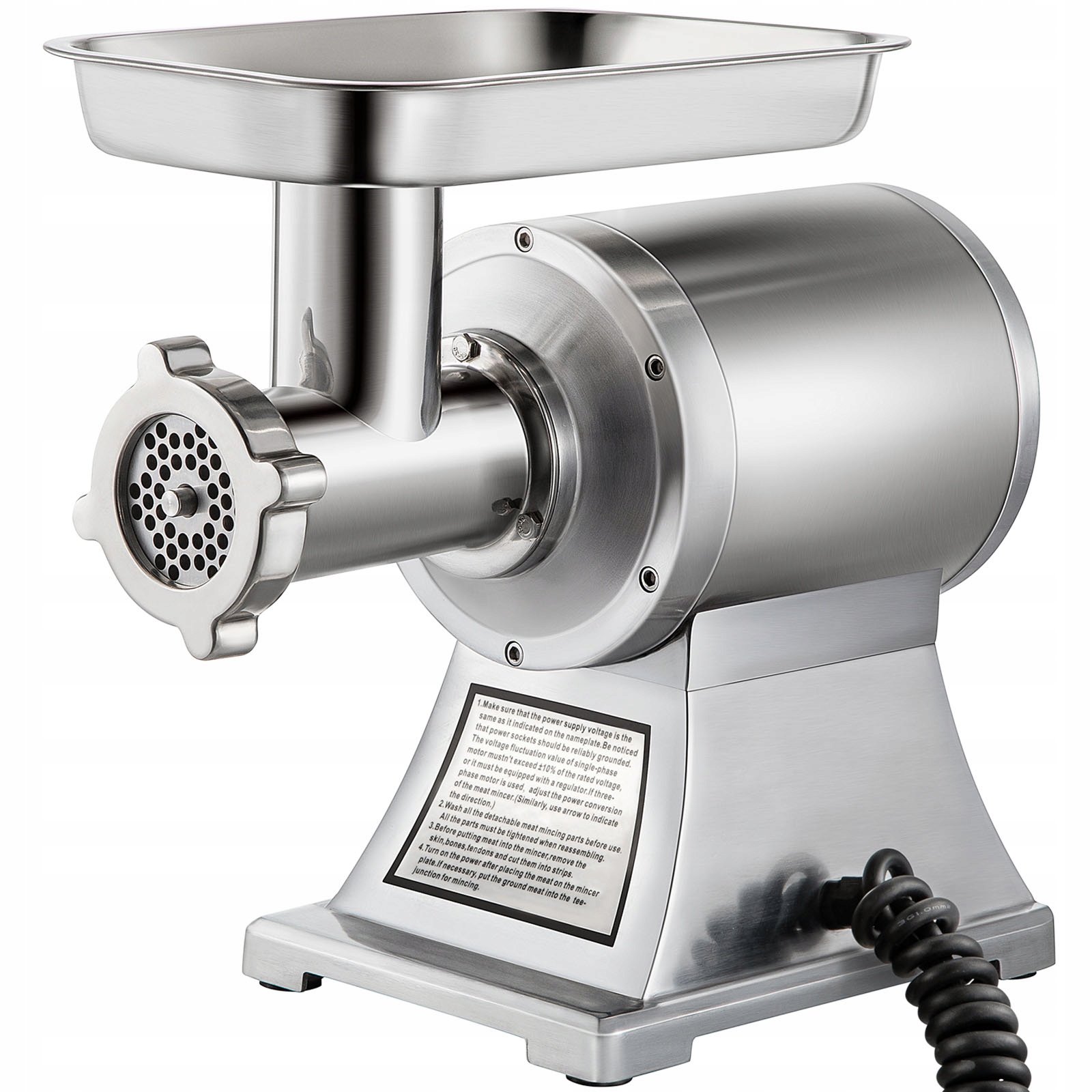 М'ясорубка виготовлена з міцної харчової нержавіючої сталі, стійкої до корозії, вологи та інтенсивного використання.